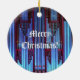 The blue lit façade pipes of the Rieger organ in the town hall, Christchurch, New Zealand, are the backdrop for the words "Merry Christmas". An ideal gift for an organist or church musician and one that can be customised to suit the occasion. The blue looks especially pretty when hung in a Christmas tree.