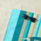 Aqua, teal and cream colorway. Vintage surfboards of the sixties and seventies were all about stripes and inlaid faux woods. Our beach towel design is reminiscent of those surfboards which were so popular on the North Shore of Oahu, Hawaii. We combined faux maple wood and added competition stripes and our North Shore Longboard Surfing Club logo and comes in several colour ways.