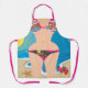 Fun kitchen apron featuring a pirate themed bikini with beach background, perfect for looking gorgeous when grilling, cooking or baking.