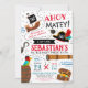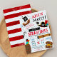 Calling all shipmates for a pirate party adventure. You are invited for some swashbuckling fun! Celebrate your little pirate captain's birthday with this adorable pirate birthday invitations, featuring watercolour pirate boat, tropical parrot, pirate map, pirate hat and pirate treasure chest. Background features a hand drawn watercolour red stripes. This pirate birthday invitation is perfect for your pirate party, walk the plank pirate birthday and so much more.