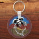 Funny pirate skull is protecting his booty! Skull with pirate hat and dagger is set upon a colourful blue background.