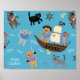 Add a fun kitty touch to the bedroom or nursery of your little boy or girl with this pirate cat pattern on blue. Pattern has several cat pirates, some on boats, some with swords, and some just hanging out as cats. Poster may be personalized with a name or other text.