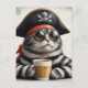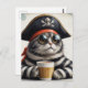 AI generated art a gorgeous pirate cat wearing a fuzzy black and white sweater enjoying coffee