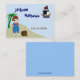 Fun pirate boy calling card / enclosure card, with cartoon graphics of a pirate ship and a pirate boy, with a treasure chest. Ready to customize for your child.