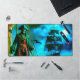 Ce tapis de bureau a un crâne effrayant pirate dessus.