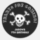 Pirate crâne et croisés autocollants pour les faveurs de la fête ou comme scellés d'enveloppe. Jote jolly roger merci d'être venu autocollants pour les enfants fête d'anniversaire ou douche bébé. Conception de thème pirate avec squelette et os croisés. Couleurs du drapeau noir et blanc. Ajoutez votre propre nom personnalisé d'enfant. Amusant pour le 5ème 6ème 7ème 8ème 9 ème Jour.