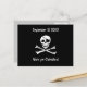 Le crâne de Jolly roger classique et les os croisés en blanc sur un arrière - plan noir. Insérez notre propre "conférence de pirate" pour s'adapter à votre occasion en tapant dans les boîtes sous "personnaliser", avant et arrière.