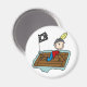 Aimant de pirate personnalisable avec un bâton de pirate sur un radeau avec un crâne et un drapeau d'os croisés.