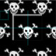 Pirate skull and crossbones pattern fabric. DIY textile with skull and cross bones print. Customizable background colour. ie black. Great for custom kids decor, clothing, table clothes, bed linnen, banners and more. Fun design for themed birthday or baby shower party. Cute decoration ideas for children and adults. Jolly roger pirate flag icon.