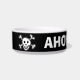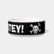 Pirate flag skull and crossbones pet bowl. Jolly roger bowls for dog or cat with custom pet name and colour. Cute gift idea for cat owner or dog lover. Personalizable colours. Ahoy Matey!