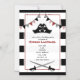 Pirate theme featuring illustration of a pirate hat with number inside crossbones, bunting, and swords at bottom. Background is black and white stripes. Red and black text.