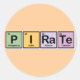 The word Pirate spelled using colourful squares representing elements from the periodic table. A cute gift idea for anyone that loves pirates, especially if they also have an interest in science or chemistry. Great for 'talk like a pirate day' too! Phosphorus + Iodine + Radium + Tellerium = PIRaTe