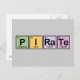 The word Pirate spelled using colourful squares representing elements from the periodic table. A cute gift idea for anyone that loves pirates, especially if they also have an interest in science or chemistry. Great for 'talk like a pirate day' too! Phosphorus + Iodine + Radium + Tellerium = PIRaTe