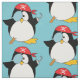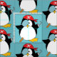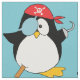 Cute black and white pirate penguins cartoon graphic drawing wearing an eye patch and a hook for hand and a wooden peg leg with a blue background with white skulls and a skull warning logo on his bandana. Great for pirate and / or penguin lovers. Fully customizable. Change the background colour to any colours of your choice.