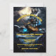A vibrant, striking and realistic looking 3D ai graphic of a pirate ship with a skull and crossbones flag billowing in the night sky sailing across a stormy sea. The ominous black clouds are hurtling down lightning and the water is glowing aqua blue against liquid black waves. Editable yellow text templates are placed strategically across the illustration for your custom wording. This elegant, luxurious and upmarket watercolor design is ideal for a jolly roger, pirate nautical, ahoy matey or fun halloween fancy dress theme party. This is suited to kids, teens and adults