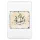 This pirate ship galleon design was sketched using a graphics tablet, to give an effect similar to a black ink drawing. The flat printed image has a look of an old piece of paper or parchment. The ship design and parchment pattern background, with a look of burned edges, is a digital art image with a nautical theme. The design on this item is a flat, printed design, not raised or textured.