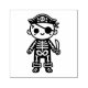 A super cute black and white illustration of an adorable pirate dressed in a skeleton costume. This charming character wears a pirate hat with a skull and crossbones, an eyepatch, and holds a cutlass. Perfect for adding a touch of fun and spooky adventure to any project.