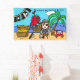 Cute hand drawn Pirate themed personalized birthday banner. Just add your son's name to this birthday in the personalize area. Hand drawn pirate, ship, flags, crab, treasure chest and all sorts of fun pirate themed cartoons!