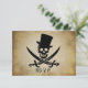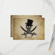 A classic Jolly Roger - with optional top hat - on an antique grunge look background. Change any of the text by typing into the boxes under "personalize it".
