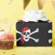 This gift wrap has some pirate skull and crossbones on it.