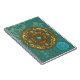 This Pisces themed mandala features an aquamarine stone surrounded by the symbol for the sign, the constellation, and the alchemical symbol for Water among filigree and weaves.