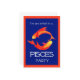 Party invitations for a Piscean with two brilliant orange fish on a deep blue background, from a watercolour painting by Judy Adamson. 'You are invited to a PISCES party' is written in white text and the back is left blank for you to add the details of the party.