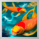A design I made with an AI (Artificial Intelligence) program! The artwork of two orange koi fish swimming underwater is a beautiful representation of Pisces astrology. The orange colour of the koi fishes symbolizes courage and strength, which is a quality that Pisces people possess. The movement of the fish underwater is symbolic of the Pisces' natural ability to adapt to different environments and circumstances. The two fish represent the duality of the Pisces sign, showing the Pisces' capacity for both logic and emotion. With its vibrant colours and gentle movements, this artwork is a stunning representation of the Pisces sign.