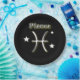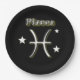 Chrome symbol of zodiac sign Pisces, astrological paper plates
