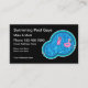 Un service de piscine amusant cartes de visite avec l'image d'un bassin, un flotteur de flamants et une fille sur un char. Conçu pour une entreprise qui fait la conception, l'entretien, le nettoyage ou la rénovation des piscines.