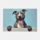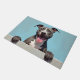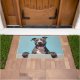 The soft steel blue background adds a modern and balanced touch, perfect for welcoming entryways. Designed with extra space at the top and bottom, it allows easy personalization with names, welcome messages, or custom text—making it ideal for unique dog-themed doormats and thoughtful gifts.
