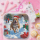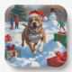 Pitbull Dog Running in Snow with Christmas Hat Paper Plate