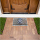The message on this doormat says, "Dog Treat Required at Door." A wonderful image of a handsome Blue Nose Pitbull named Sarge is also shown on this doormat. Sarge is looking up at you with big wide eyes, ears flopping over his head and a comical expression on his face as he eagerly waits for someone to give him a dog treat.