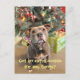 This cute Christmas postcard says, "Got an extra cookie for me, Santa?" It shows our handsome and very gentle Pitbull named Sarge sitting tall and hopeful by presents under the Christmas tree as he waits for a cookie from Santa's stash of goodies.