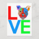 Colourful smiling pitbull face with letters L,V and E. Digital designs creating a patchwork pattern. Customize background colour.