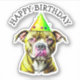 Cute Pitbull with a birthday hat on in yellow and green. Cute for a dog lovers or Pitbull owner gift.