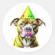 Pitbull with Birthday Hat Classic Round Sticker