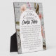 Ordered this plaque for a table at the entrance of my daughter's wedding reception. It looks very nice and is durable and not flimsy. Nice job! Printing in the plaque was very good and clear. I decided to add a touch of purple, one of the wedding colors, for several words to add a pop of color. Very nice job!