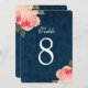 Pivoines Corail et Numéros de Table Navy