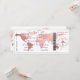 PixDezines boarding pass save the date for any destination wedding with faux rose gold world map and a tiny red heart to indicate your destination.