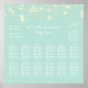 PixDezines light strings with DIY mint green background colour. This wedding seating chart utilizing poster stock and/or canvas.