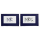 PixDezines Mr. and Mrs. pillow cases with DIY colour and font. Navy blue.