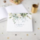 PixDezines elegant monogram guestbook, watercolor flowers and greenery in dusty blue gum Eucalyptus. All elements editable.
