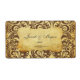 PixDezines Felina wedding labels with Fidora Damask in chocolate on vintage faux parchment background.