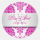 PixDezines florentius damask in hot pink on faux silver background, simply add monogram for this glorious wedding stickers (envelope sealers). DIY font and fonts' colours.com. All rights reserved.