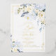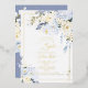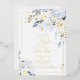 PixDezines Baptism 3 colours foil available, featuring watercolor ice blue hydrangeas and alabaster roses with springs of gum eucalyptus; a faux gold cross, gold dust and frame accented with luxury calligraphy script. All elements editable and removable.