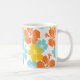 PixDezines colourful hibiscus mug, digital watercolor in orange aqua blue and yellow.