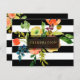 PixDezines bat mitzvah reception cards or celebration cards, black and white stripes are adjustable on DIY background colour with floral watercolor, ranunculus, peonies and mums.com. All rights reserved.