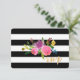 PixDezines rsvp bar-mitsva, les rayures noires et blanches sont réglables sur fond coloré DIY avec aquarelle florale, renoncules, pivoines et chrysanthèmes.com. Tous droits réservés.