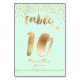 PixDezines gold brush strokes table number 10, with faux gold sprinkles and a DIY mint green background.