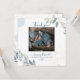 PixDezines thank you and Birth Announcement for a baby boy with watercolor foliage in dusty blue Eucalyptus, and champagne bubbles.